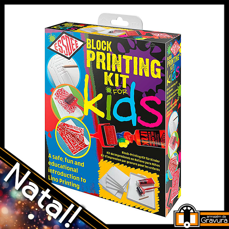 Este combo traz, em uma bonita caixa, materiais elaborados especificamente para a iniciação das crianças em técnicas de relevo como xilogravura: vem com seis placas de PrintFoam, material desenvolvido especificamente para gravura infantil; um rolo de 4,5 cm para entintar; um tubo de tinta à base de água premium da EssDee, que é atóxica e fácil de lavar; prática bandeja de entintagem para dispor a tinta; e um lápis para a criança desenhar e gravar no PrintFoam; e instruções inspiradoras em inglês bem ilustradas!