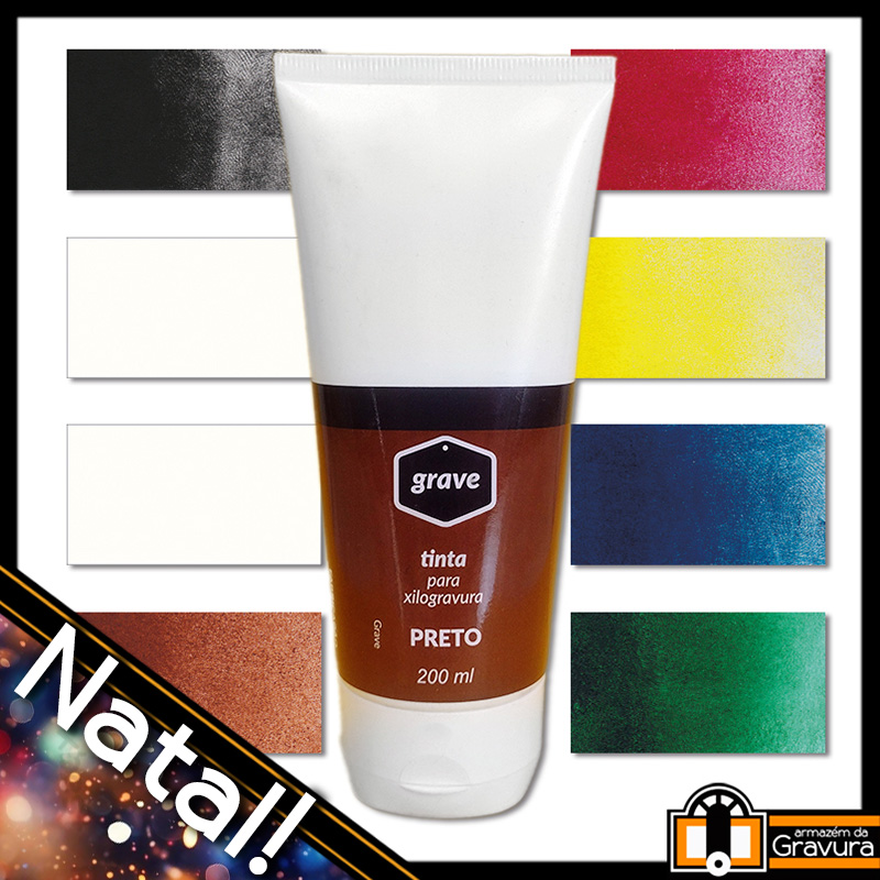 Tinta muito versátil para xilogravura em suas diversas técnicas em embalagem de 200 ml oferecida pela Grave em 8 opções de cor. Com ela o artista poderá imprimir em matriz de madeira, linóleo, laqueado, MDF, etc.